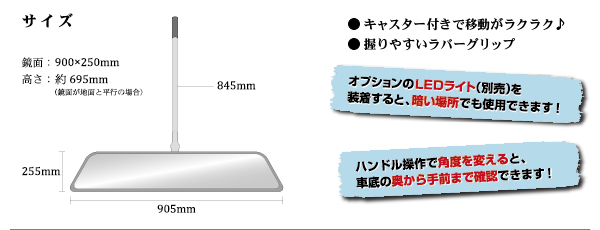 ■ご使用上の注意(ご使用になる前に、必ずお読みください) ● ハンドルはネジがしっかりと締まっていることを確認してからご使用ください。● 保管時、鏡面部分にキズがつかないようご注意ください。● 金属タワシ、紙やすり等で鏡面をこすらないでください。 シンナーやラッカー等では絶対に拭かないでください。● 鏡面が汚れた場合は、柔らかい布にぬるま湯で薄めた中性洗剤をつけ、全体的に軽く拭き取ってください。